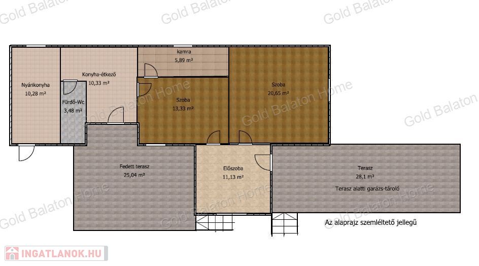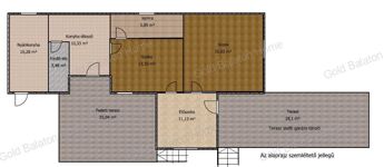 - alapterület 65 m2 (teraszok nélkül) plusz 10m2-es nyárikonyha