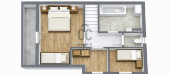 Az emeleten három hálószoba és egy fürdőszoba szolgálja a család kényelmét és kényelmes elosztást biztosít.