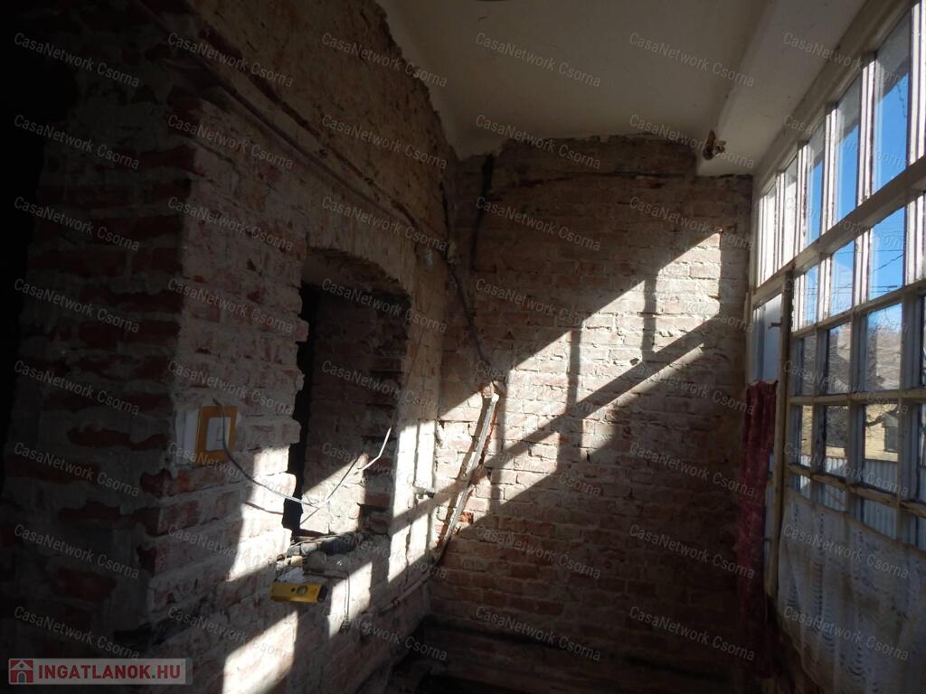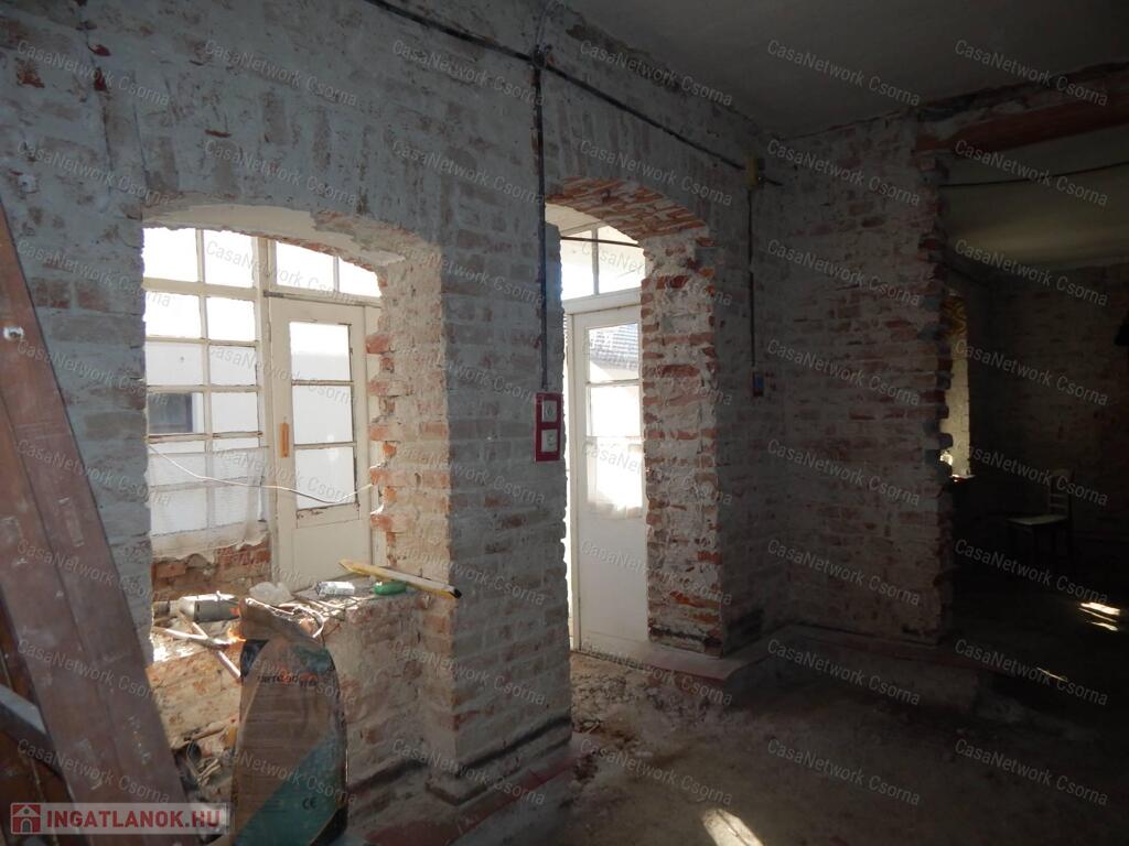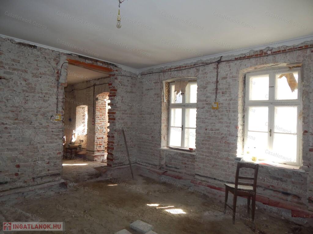 Csornai Casanetwork Ingatlan eladásra kínál egy központ közeli családi házat.A csornai családi ház jellemzői:- hagyományos parasztház stílusú épület, amelynek a belső tere szabadon variálható, modernizálható;-a ház falának vízszigetelése megtörtént falvágásos technikával;-belső tér még kialakítás alatt van: aljzatolásra előkészítve, melléképület felé szabadon bővíthető;-telek 50%-ban beépíthető, így akár társasház építésére is alkalmas;-kertben 800nm-en termő gyümölcsfák vannak;-melléképület, garázs;-ásott kút;Iskola, óvoda 200m-re, városközpont kb. 800m. Őrizze meg a ház régies jellegét és/vagy építsen újat ! Tornácos, tégla épületet ma már keveset talál, csapjon le rá!Amennyiben felkeltette érdeklődését az eladó csornai családi ház hívja a +36-70/423-5353-as számot, vagy írjon a monika.czinder@casanetwork.hu emailre.