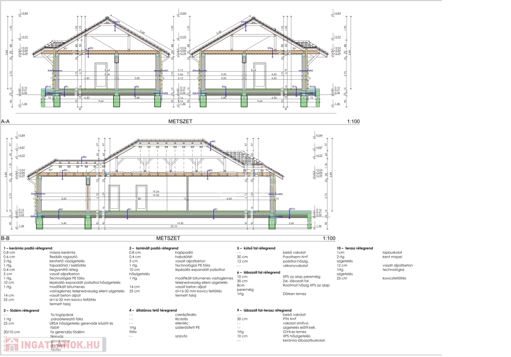 A Porotherm 30 N+F téglából épülő tartószerkezeti falak, a betonkoszorú és a fa födémes tetőszerkezet hosszú távú stabilitást biztosítanak. A kiemelkedő hőszigetelésről 10 cm-es polisztirol lábazati, 15 cm-es EPS homlokzati, valamint 30 cm-es ásványgyapot födémszigetelés gondoskodik.