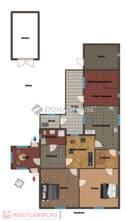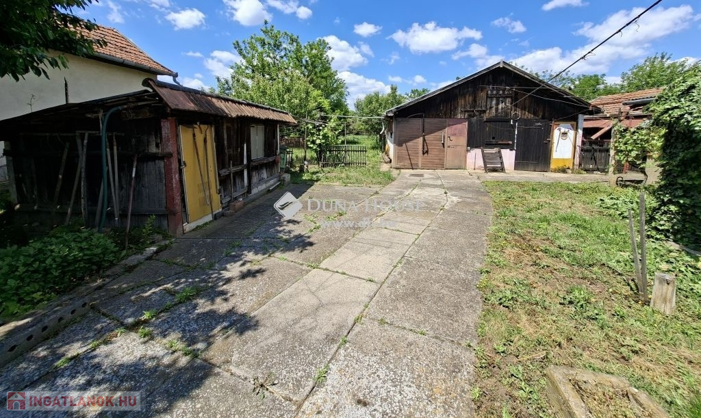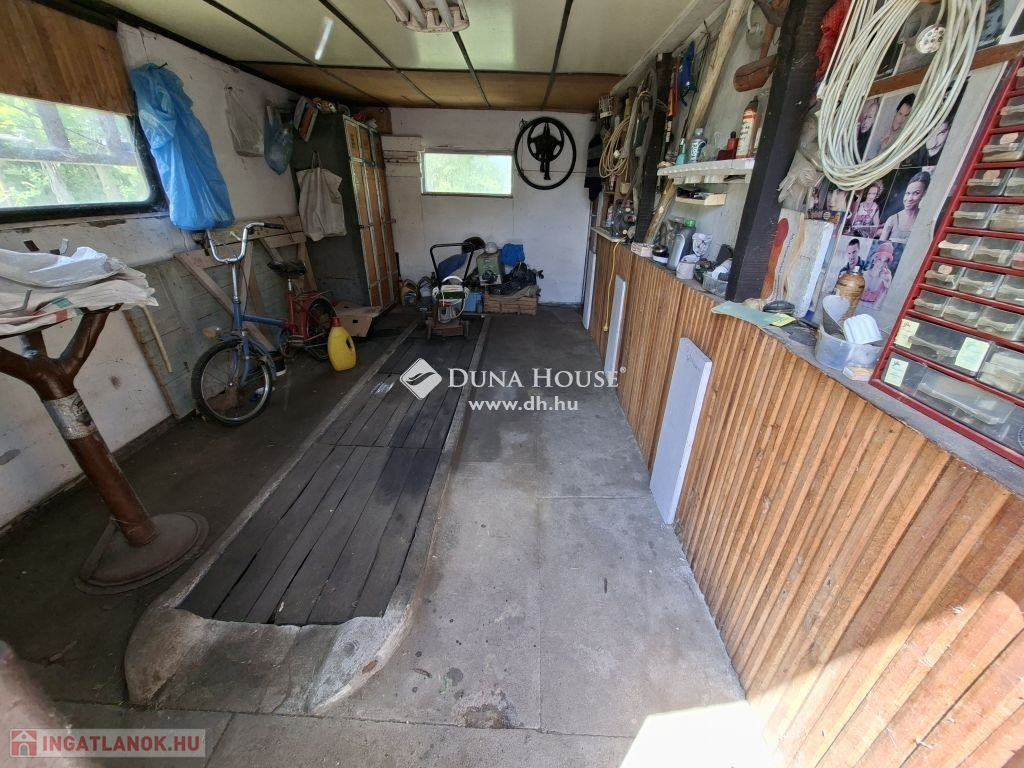 Az udvaron található garázs szerelőaknával felszerelt, így autótulajdonosoknak vagy barkácsolóknak különösen praktikus lehet.