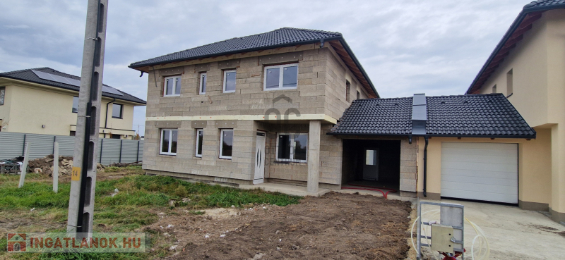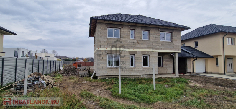 A Tégláskert újépítésű házas részén, csendes utcában eladó egy szerkezetkész, 187 m2-es, nappali-amerikai konyha +5 szobás ikerház!