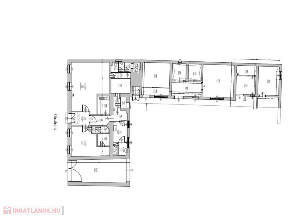 Több egységből álló, összesen 180 nm alapterületű, felújítandó épület együttes. Az utcafront szélessége 17 m. Zárt sorú beépítési módban épült, széles kapubejáróján biztosított az udvari beállási lehetőség. A főépület alapterülete 100 nm, belmagassága 3,4 m, szinte teljesen alápincézett, 80 nm szuterénrésszel rendelkezik.