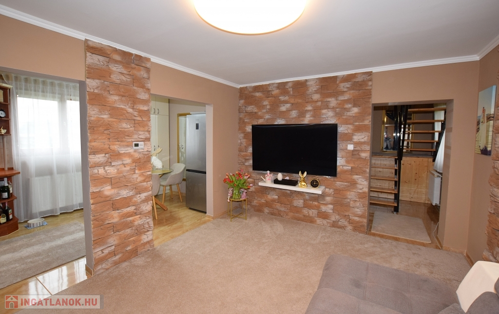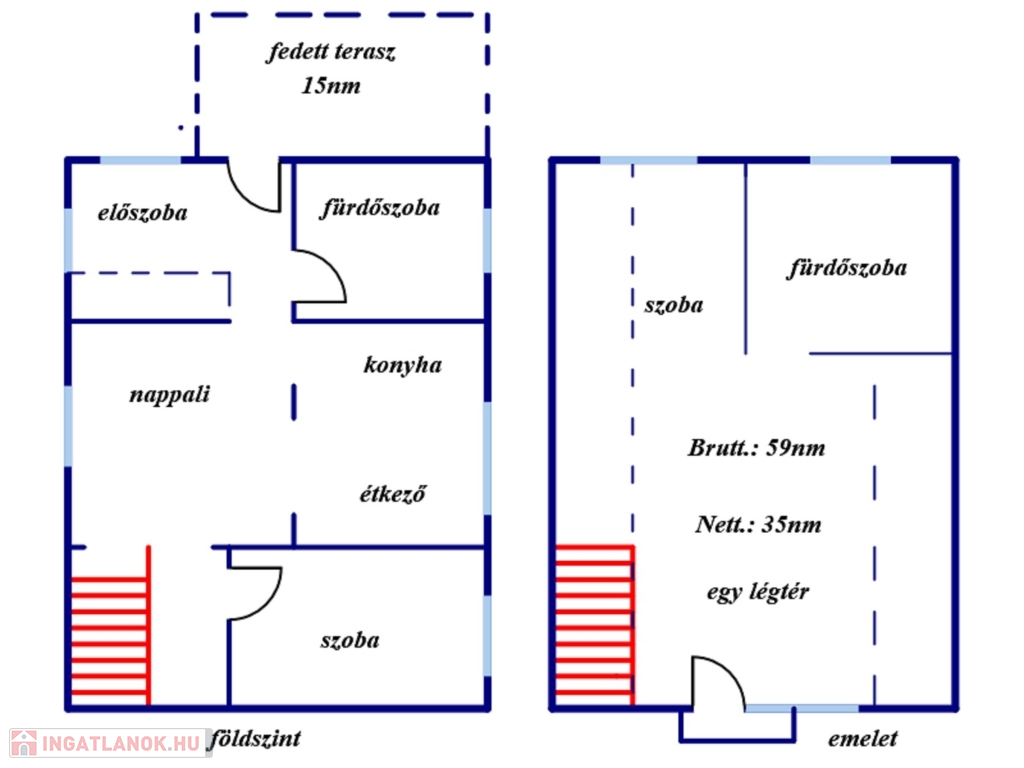 - belső kettő szint, földszint 55 nm, emelet 59 nm (emeletet egy légterűvé hagyták)