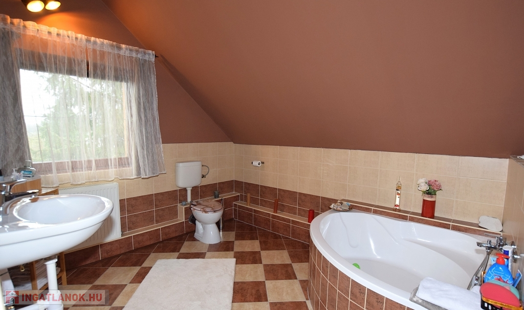- beton alap, tégla fal + hőszigetelés, beton cserép tető