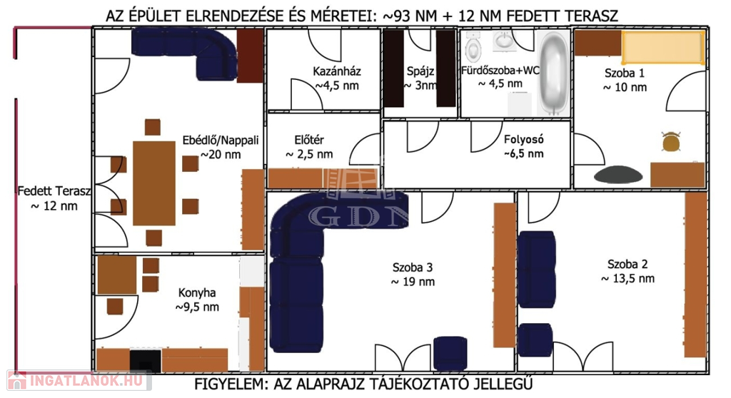 - családi ház: 93 nm+ 12 nm fedett terasz,