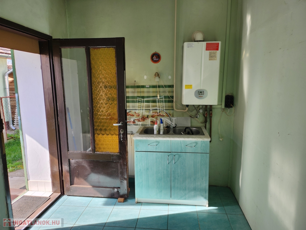 A házzal egybeépítve egy 18nm-es nyári konyha van. Az udvaron egy külön álló 16 nm fából készített fedett szerelő aknás garázs található. A telken van még egy fából készített lomos/tároló illetve a telek végén egy kis vályog épület.
