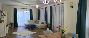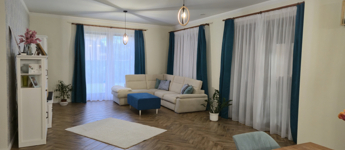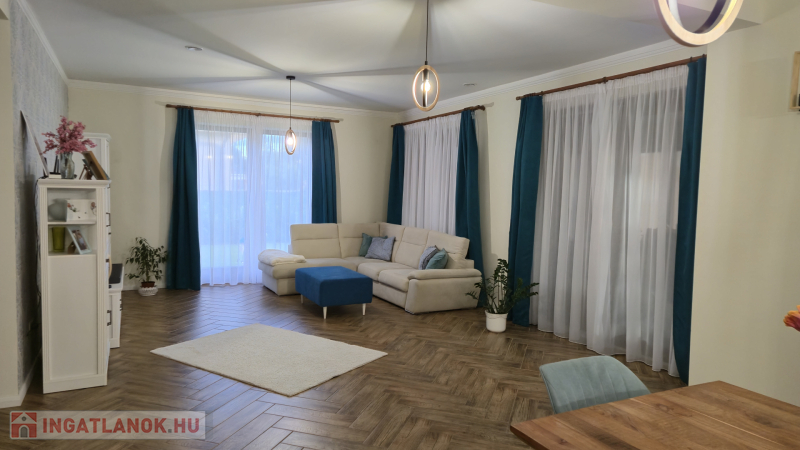 helyiségei : 3 nagyméretű szoba, fürdők, wc , gardrob + terasz