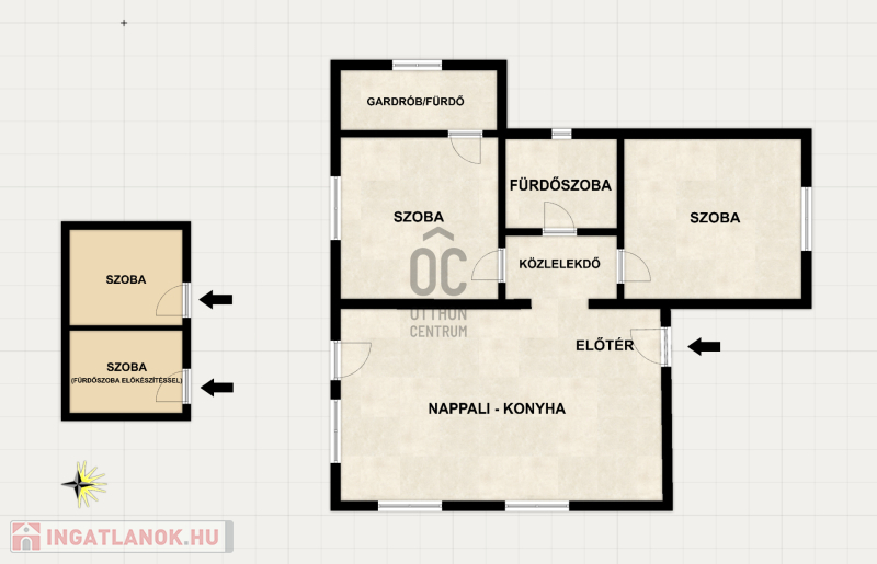 -Nettó 19 m² melléképület: 2 szoba + fürdő előkészítéssel