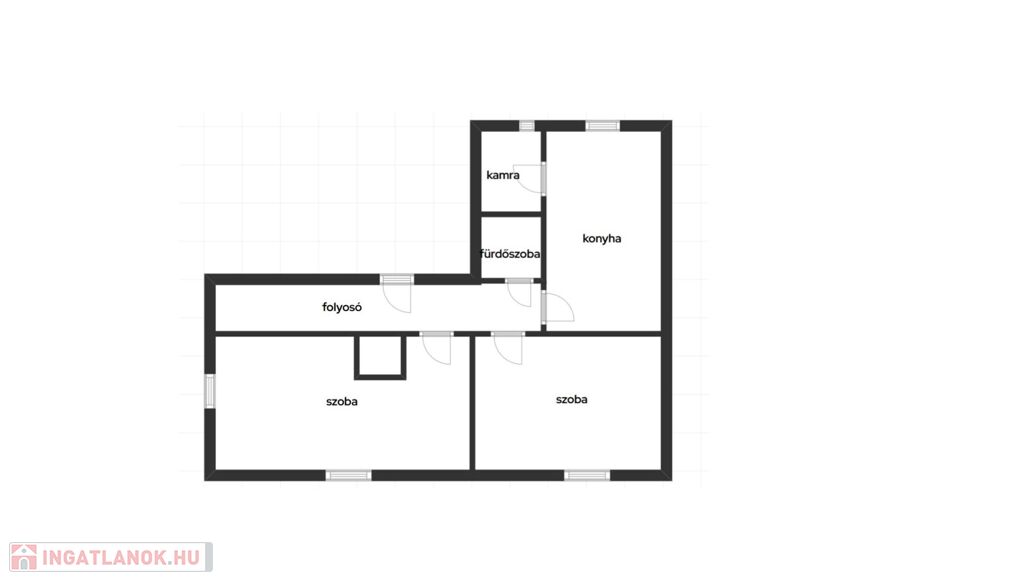 -előtér, konyha, kamra, 2 szoba, fürdőszoba WC-vel, kis pincerészből áll,