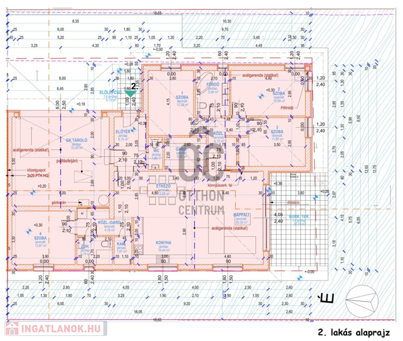 2. lakás 181 nm számított alapterülettel: (134nm + 27nm + 33 nm)
