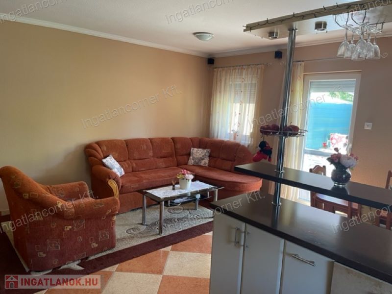 Délegyháza központhoz közel eső részén eladó egy 2011-ban épült, nagyon szép állapotban levő ikerház egyik lakása. Az ingatlan nettó 75 m2-es hozzátartozó 15 m2-es fedett terasszal és egy 31 m2-es külön álló garázzsal. A Pro-concept technológiával épült, alacsony rezsijű amerikai-konyhás nappali étkezővel, három hálószoba, fürdőszoba, káddal, külön wc. Fűtése radiátorral megoldva, kombi gáz cirkóval amely a meleg vizet is szolgáltatja. Nyílászárók műanyagból lettek beépítve redőnyökkel és szúnyoghálóval. A telek 474 m2-es összközműves amelyben helyet kapott egy minden engedéllyel rendelkező 30 m2-es beton alapon lévő garázs is, aminek az egyik fele jelenleg kozmetikai szalonként üzemel. Itt áram és vizesblokk is van, de bármely más tevékenységre is használható. A telken van fúrt kút, gyümölcsfák, épített bográcsozó, medencének kialakított hely is. Igényes belső burkolattal rendelkező házba csak költözni kell. A konyhabútor a gépekkel az árban van. Tavak a közelben találhatóak. Közlekedés jó, Vasút állomás, buszmegálló , központ, óvoda kb. 5 perc sétára található.