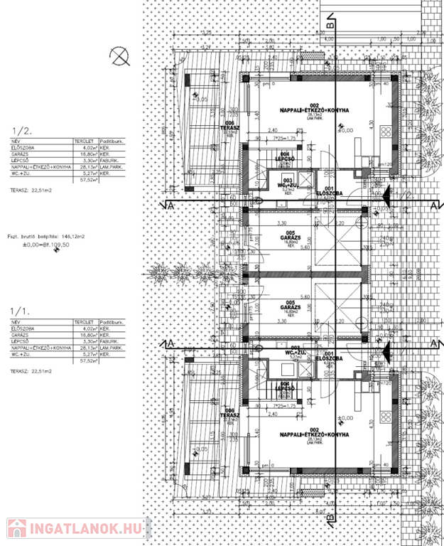 MINDKÉT LAKÓHÁZ ALAPRAJZA, KIVITELEZÉSE, MŰSZAKI TARTALMA AZONOS!