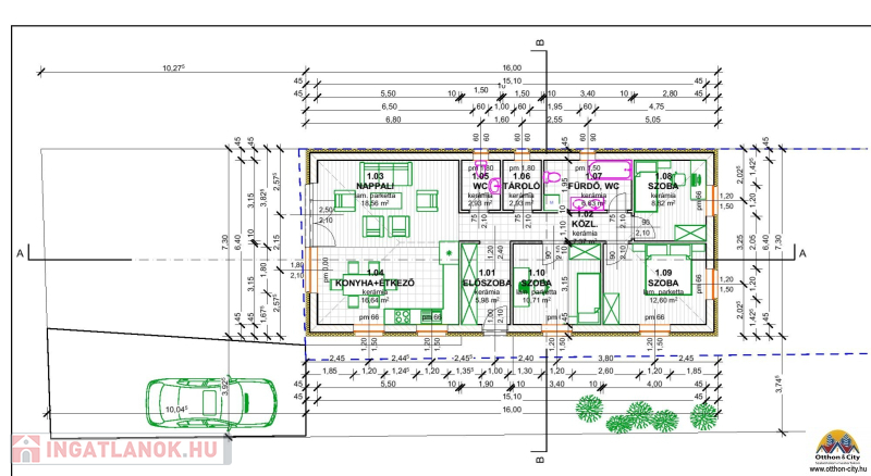 3 rétegű műanyag nyílászázók, 15 cm-es dryvit külső szigetelés, burkolatok (hideg és meleg) 5000/nm-ig az ár tartalmazza, azon felül csak a különbözetet kell kifizetni, fűtés:modern hőszivattyú padlófűtéssel.