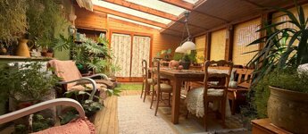 – nagy méretű, beépített terasz (télikert), amely a ház központi életterévé vált