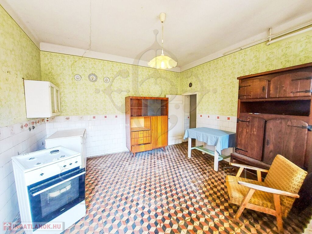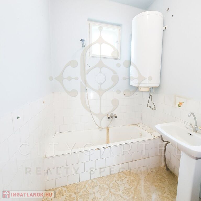 Kiváló statikai állapotban lévő, viszont alapos felújítást igénylő kockaházat kínálunk eladásra az egyedülálló hangulatú, Duna-parti kisvárosban. A település centrumától kissé távolabb, csendes, kertvárosias jellegű utcában található ingatlan az 1960-as végén épült, masszív, száraz, tégla falai mindvégig derekasan állták az időjárás viszontagságait. A rendkívül jó elrendezésű épület középpontjában álló folyosóról két tágas hálószoba, valamint egy kisebb szoba és fürdőszoba nyílik. A ház hátsó traktusában nagy konyha és kamra foglal helyet. A családi ház fűtéséről gázkazánnal üzemeltetett központi fűtésrendszer gondoskodik. Az 1.426 nm-es telken elterülő előkert, udvar és hátsókert rendbetétele szintén az új tulajdonosra vár.