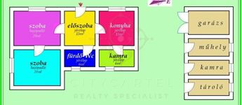 Rendkívül kedvező kínálati áron, a piaci értékénél lényegesen olcsóbban kínálunk eladásra családi házat Dunaföldváron. A csendes Duna-parti kisváros frekventált pontján, jól megközelíthető helyen álló ingatlan az 1950-es években épült, kiváló statikai állapotban lévő, száraz falai 82 nm-es lakóteret zárnak közre. Az épület középpontjában álló előszobához két tágas hálószoba, világos konyha, kamra, fürdőszoba és WC kapcsolódik. A családi ház fűtéséről gázkonvektorok, a meleg víz előállításáról gázbojler gondoskodik. A főépület mellett álló, 50 nm-es melléképület garázsnak, kamrának, téglázott pincének és tároló helyiségeknek ad helyet. A 2.121 nm-es telken gondozott előkert, udvar, valamint tekintélyes méretű hátsó kert terül el.