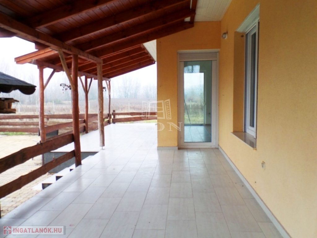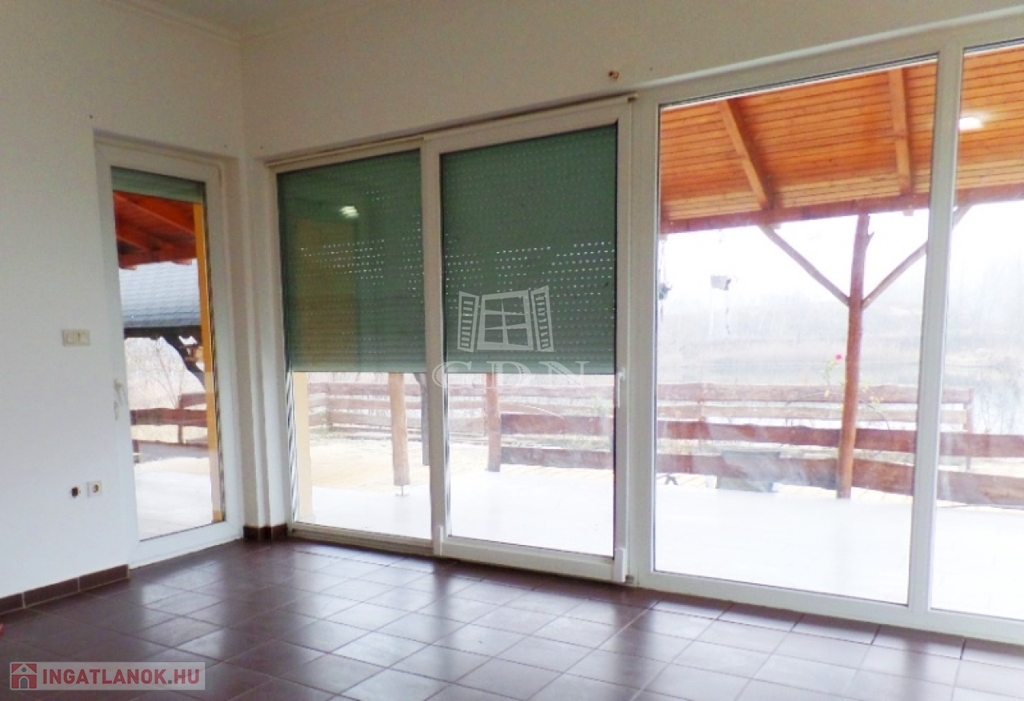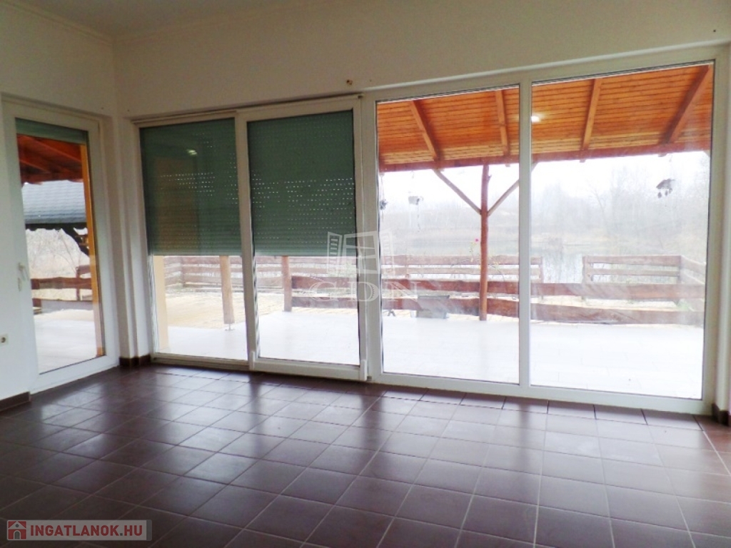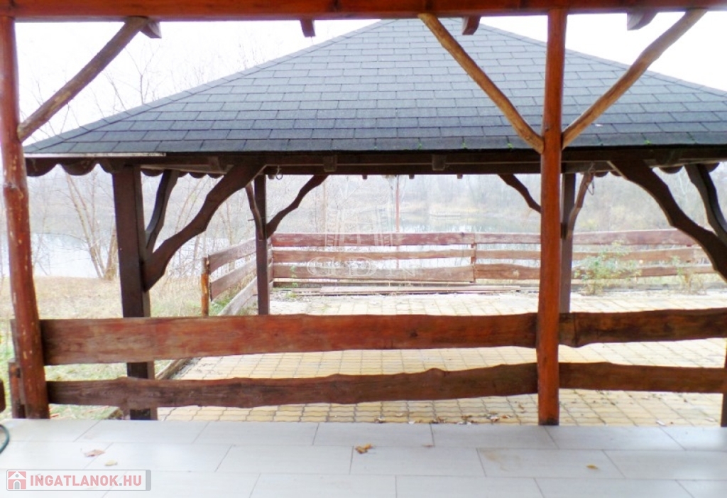 A ház közvetlenül a tó partjára épült, a szobák terasz kapcsolatosak és vízre panorámásak. A halastó mérete közel 1 hektáros. A ház körüli 300m2 terület viacolorral burkolt. Több melléképület is található a területen, valamint 4 autó részére kialakított fedett autóbeálló. A terület kerítéssel körbekerített, elektromos kapuval rendelkezik.