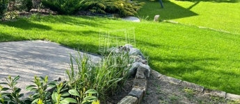 Az udvarban gyűrűs kút van, öntözőrendszer előkészítve.