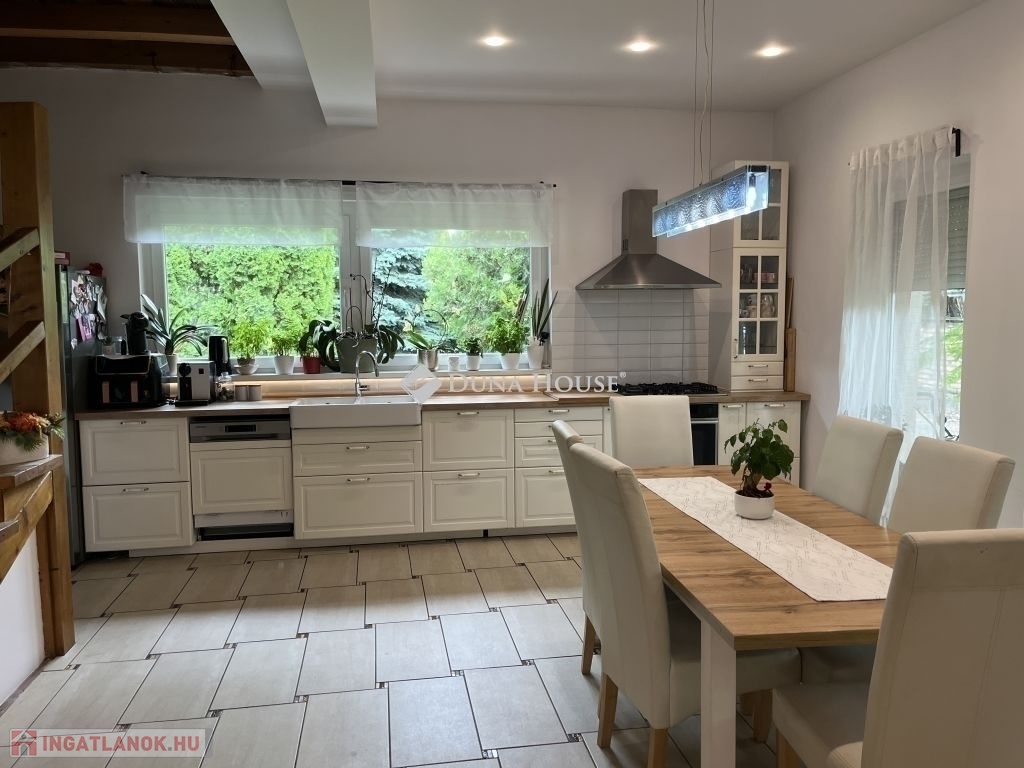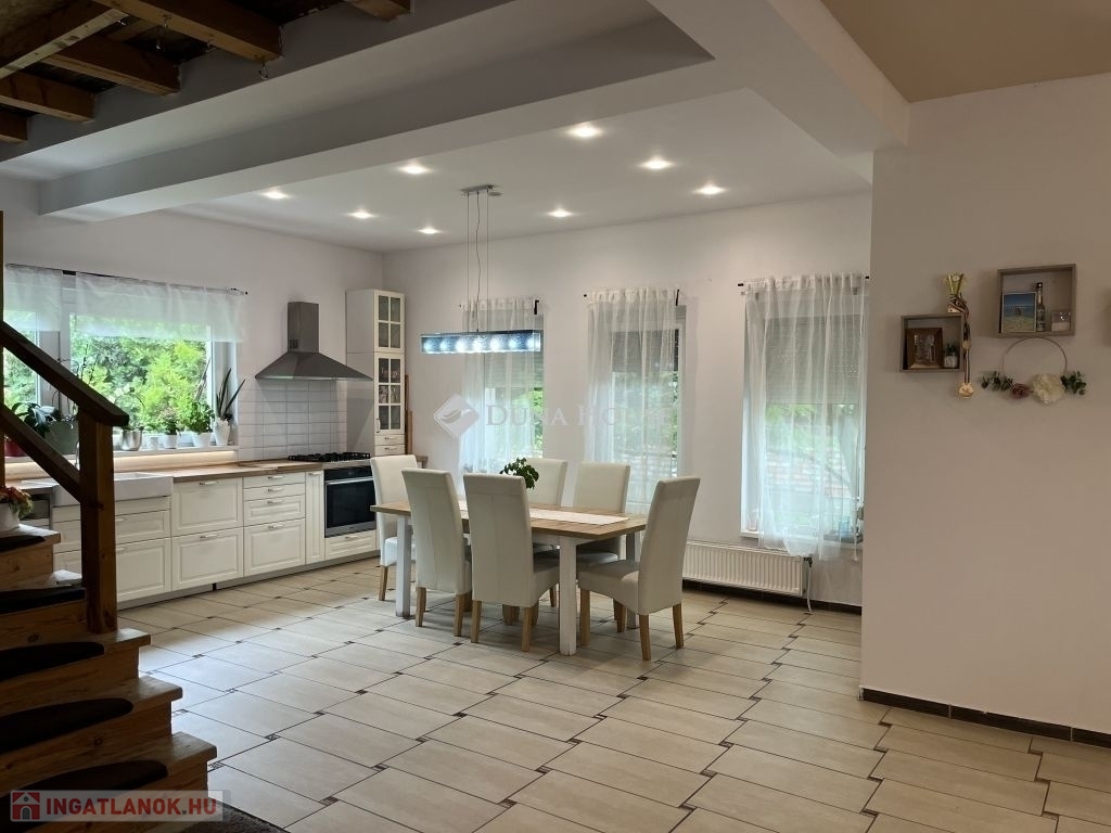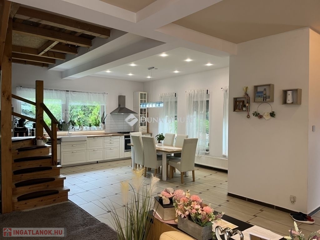 Dunakeszi központi részén eladó egy kiváló adottságú, kétgenerációs családi ház, amely ideális választás nagyobb családoknak, valamint azoknak, akik otthonuk mellett szeretnének műhelyt, irodát vagy vállalkozási teret kialakítani.