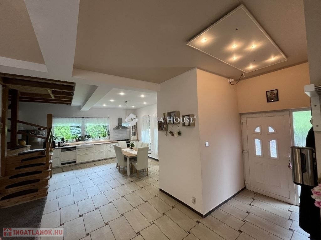 A külön bejárat biztosítja a lakótér és a munkatér teljes elválasztását, így az ingatlan tökéletes megoldás két generáció együttélésére vagy otthonról dolgozók számára.