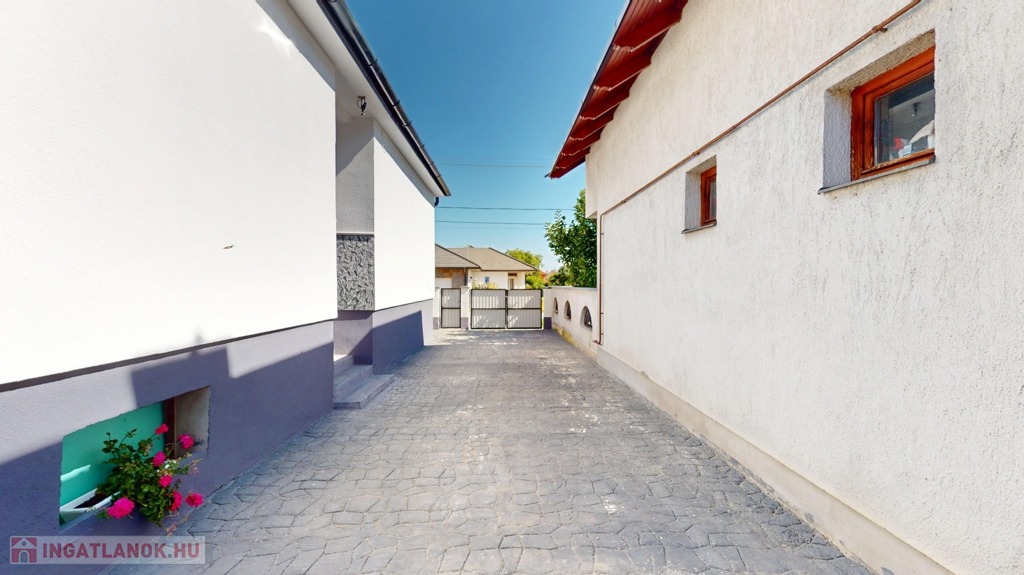 Az udvar nagy része térkövezett, így rendezett megjelenést és könnyű karbantartást biztosít, ugyanakkor zöldfelület is maradt, amely ideális lehet kertészkedéshez vagy pihenéshez. A frissen épített kerítés gondoskodik a biztonságról és a privát szféráról, míg a kényelmes, újonnan kialakított terasz tökéletes helyszín a reggeli kávéhoz vagy az esti kikapcsolódáshoz. A környék csendes, barátságos, és kiváló infrastruktúrával rendelkezik, így ideális választás mindazoknak, akik nyugodt, mégis jól megközelíthető otthont keresnek.