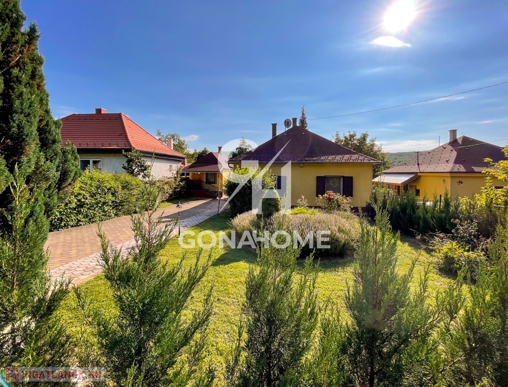 A 2388 m²-es telken gondozott kert, termő gyümölcsfák, gesztenyefák és a telek végében csörgedező kis patak kínál nyugalmat, mindezt a Bakony lenyűgöző panorámája teszi teljessé.
