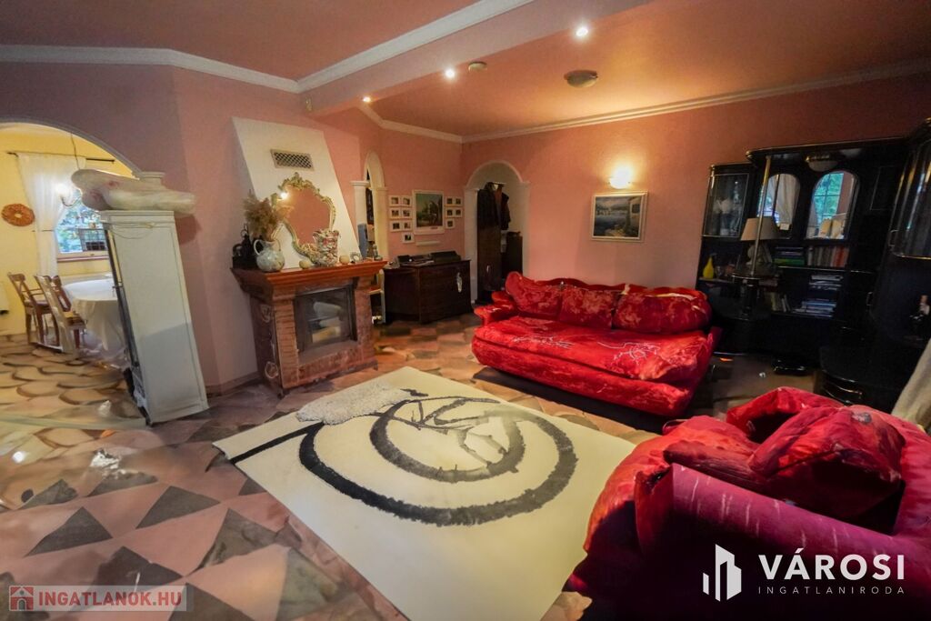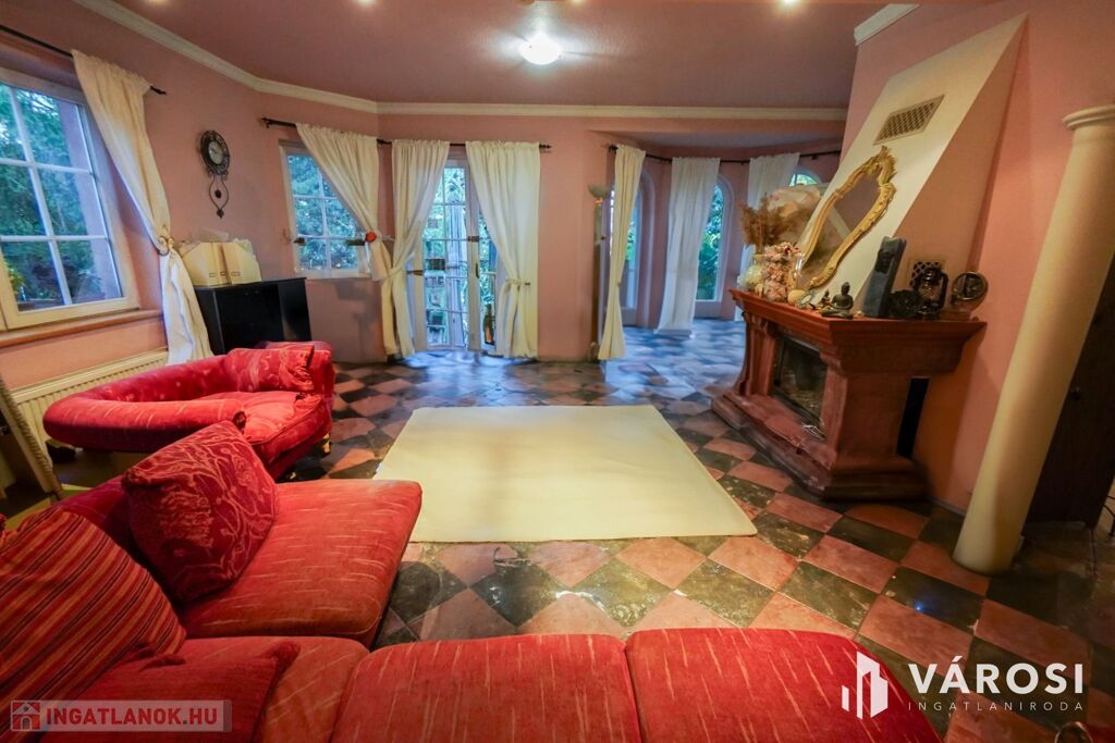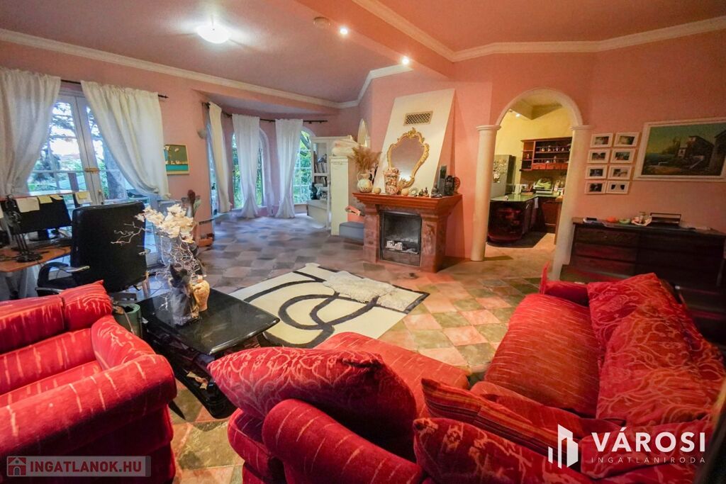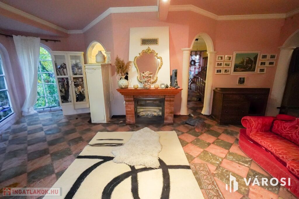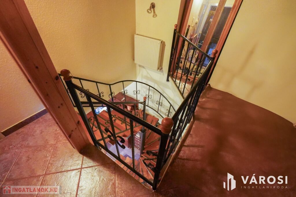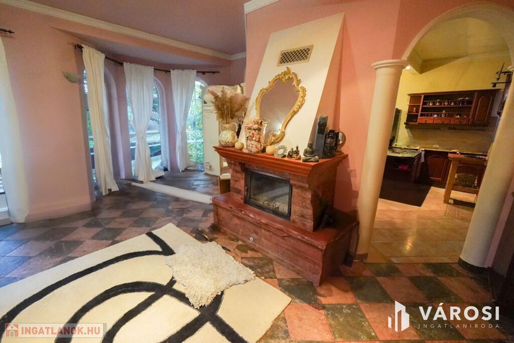 Gyönyörű impozáns kandalló a nappali ékköveként, kovácsoltvas belső lépcső amik az ingatlan fényét tovább emelik!