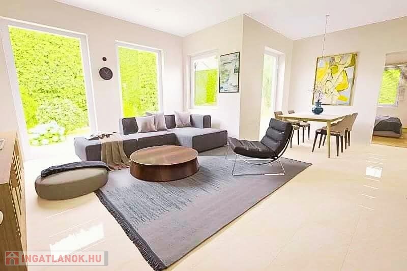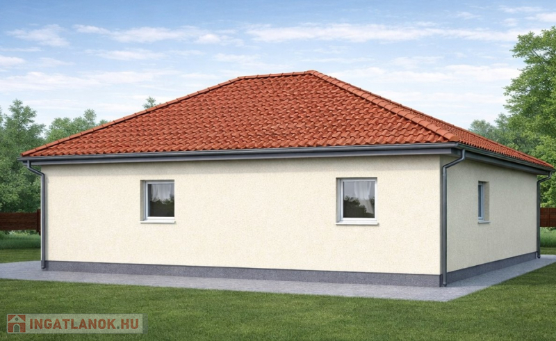 Kiváló adottságú telek előnyeit figyelembe véve alaposan átgondolt tervezés alapján épül az ingatlan benapozottsága optimális.
