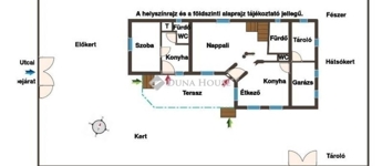 A kisebb lakrész 36 m2-es, földszintes, szoba, konyhából, fürdőszoba-WC-ből és kis tárolóból áll.