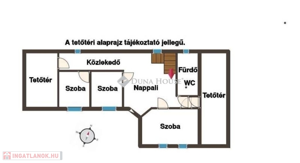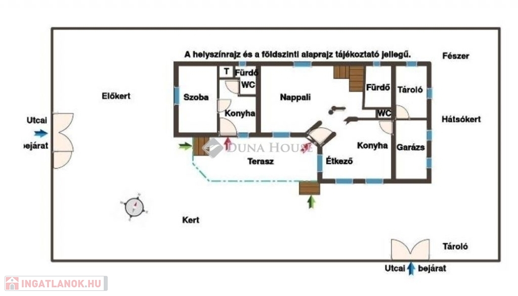 A ház és a lakrészek tájolása ideális, dél-keleti, dél-nyugati fekvésük révén egész nap kapnak napot.