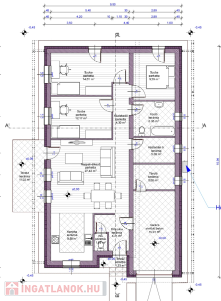 Kiváló adottságú telek előnyeit figyelembe véve alaposan átgondolt tervezés alapján épül az ingatlan benapozottsága optimális.