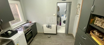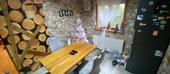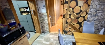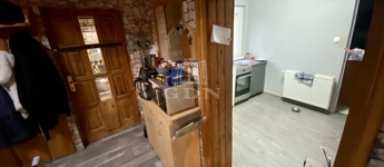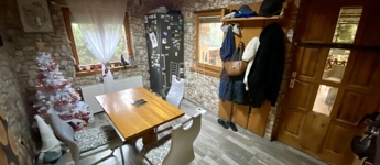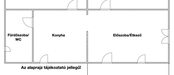 A teraszról az előszobába lépve került kialakításra az étkező, ahonnan nyílik egy szoba, illetve a konyha, melyben iparossal, egyedileg méretre készített konyhabútor található. A konyhából nyílik a fürdőszoba illetve még egy szoba. A fűtést gáz cirkó rendszer biztosítja.