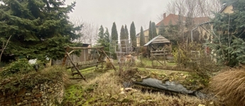 A kert igazi különlegesség: több, pihenésre alkalmas rész került kialakításra, keményfából épített fedett kiülővel, dupla gépkocsi-beállóval, kerti tóval, valamint gabion kerítéssel és kövekkel díszített magas ágyásokkal, örökzöld növényekkel. A kellemes hangulatról 2 db hintaágy is gondoskodik. A magas növényzettel körbevett telek teljes intimitást biztosít, elzárva a külvilágtól.