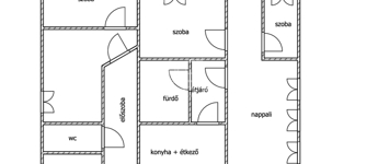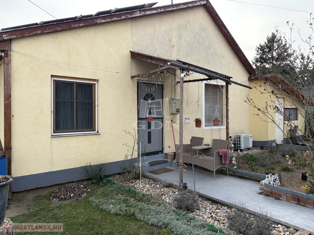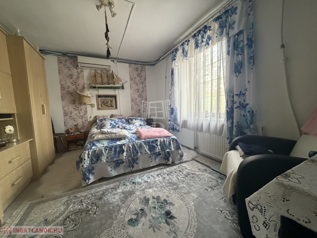 Az első, nagyobbik részen nappali, konyha, 2 hálószoba, és egy fürdőszoba található.