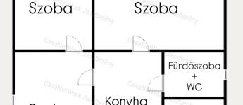 Helyiségek: konyha, három szoba, fürdőszoba+WC, kamra.