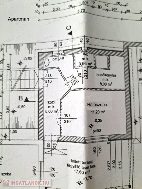 - a külön bejáratú apartman alapterülete 25 nm: közlekedő, hálószoba, mini konyha, zuhanyzó, mosdó, WC, fedett terasz, pincelejáró