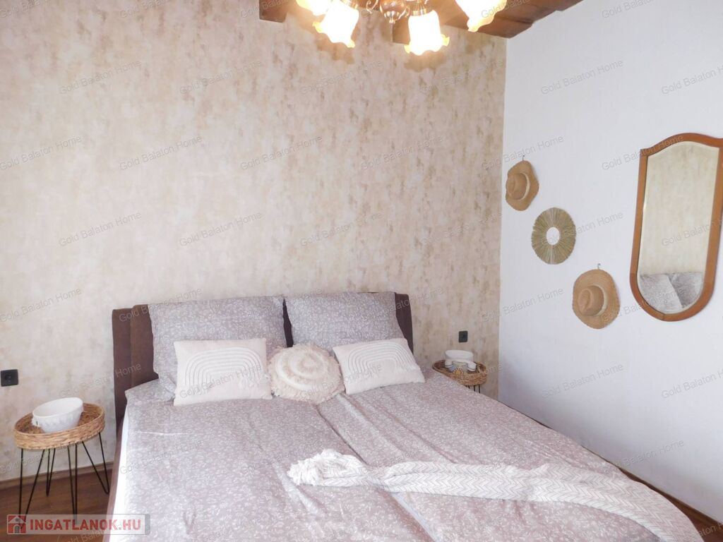 Azonnal költözhető felújított családi ház konyha - étkezővel, 2 hálószobával, külön bejáratú apartmannal, boltíves pincével a Kis-Balatontól 5000 méterre eladó.