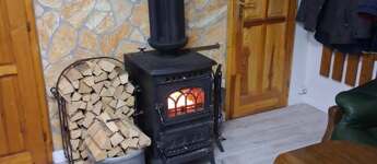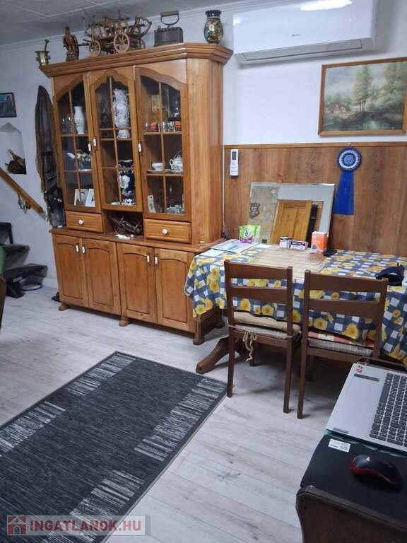 Az alsó szinten nappali, konyha, fürdő (WC-vel), spájz található. Az emeleten 2 szoba, előtér, mosdó wc-vel. Az épület fűtése vízteres öntvény látványkandallóval és radiátorokkal került kialakításra; továbbá 1-1 inverteres hűtő-fűtő klíma található az alsó és a felső szinten is. Az épülettel egybeépítve egy távirányítós kapuval ellátott 24 nm-es garázs is tartozik az ingatlanhoz. A garázs egyben műhelyként van berendezve értékes szerszámokkal (köszörűgép, oszlopos fúrógép, inverteres hegesztő, kéziszerszámok, Scheppack 8t rönkhasító stb.).