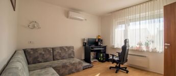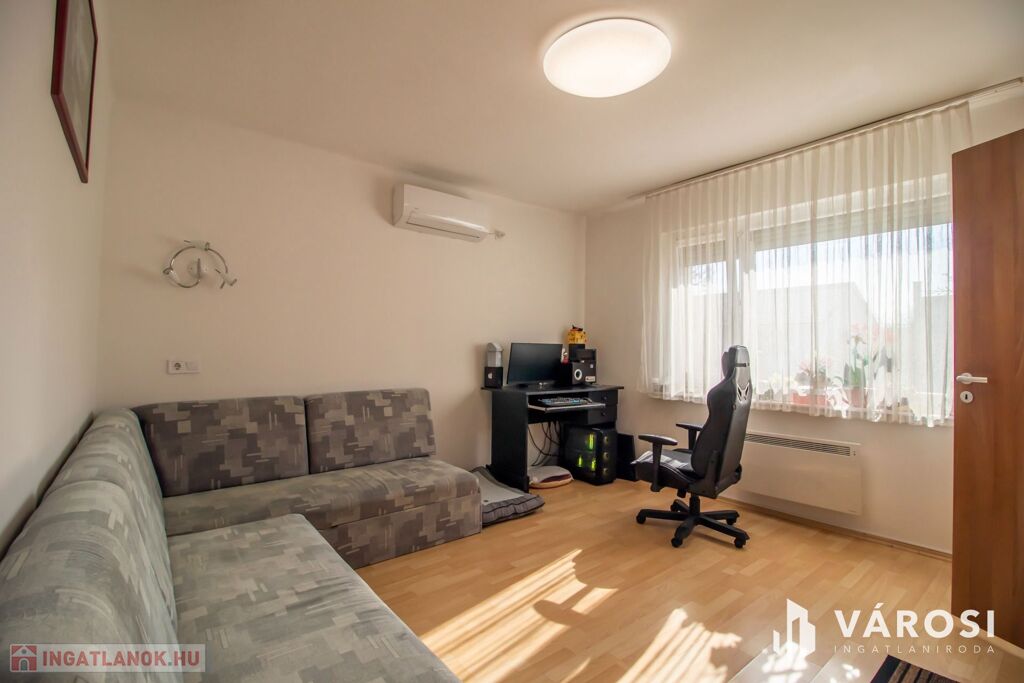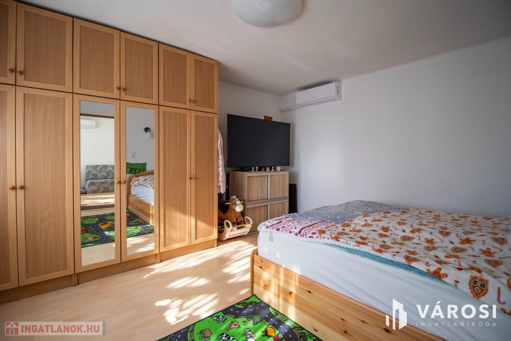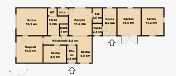 A ház két különálló lakóegységből áll. Az első egységben nappali, konyha-étkező, 2 szoba, 1 félszoba, fürdő, gardrób és fürdőszoba kapott helyet 87 négyzetméteren. A második lakóegységben, ami kívülről közelíthető meg, egy vendégszoba és kis fürdő + WC készült a 11 négyzetméteren.A házhoz tartozik egy udvari fedett terasz is, ami ideális helye a kerti partiknak és pihenésnek.