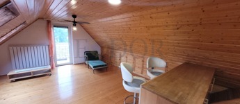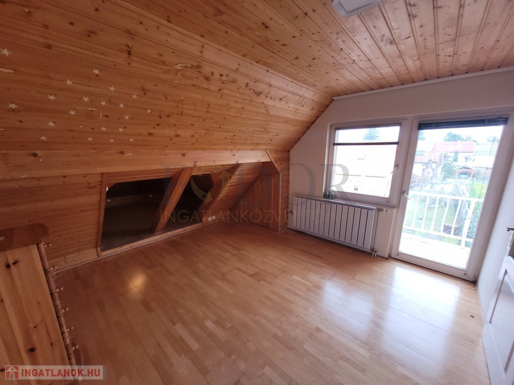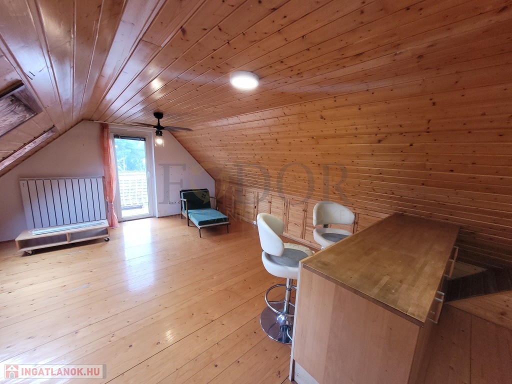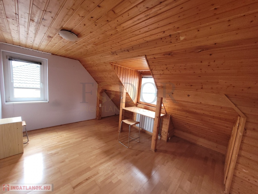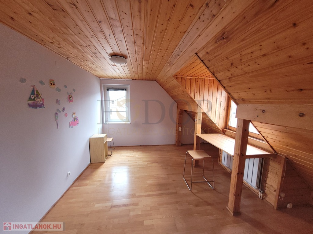 Az emeleti szinten újabb két hálószoba található, egyikük saját terasszal, valamint egy zuhanyzós fürdőszoba, külön WC-vel, és egy modern, amerikai stílusú konyhás nappali teszi teljessé az otthonos hangulatot.