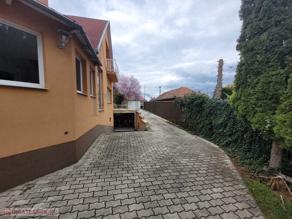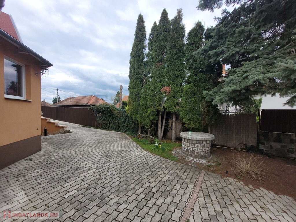 Az ingatlan egy 750 m²-es, gyönyörűen parkosított telken fekszik, ahol kerti tó, szökőkút és öntözőrendszer is helyet kapott – itt minden adott a pihenéshez, feltöltődéshez. A ház 2000-es években épült, 300 m² lakóterülettel és hat különálló szobával rendelkezik, elosztása pedig tökéletesen támogatja a kényelmes, akár kétgenerációs együttélést is.