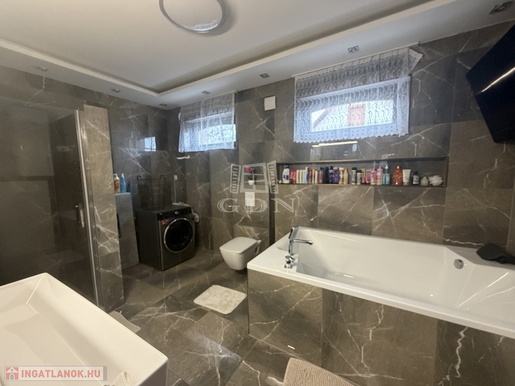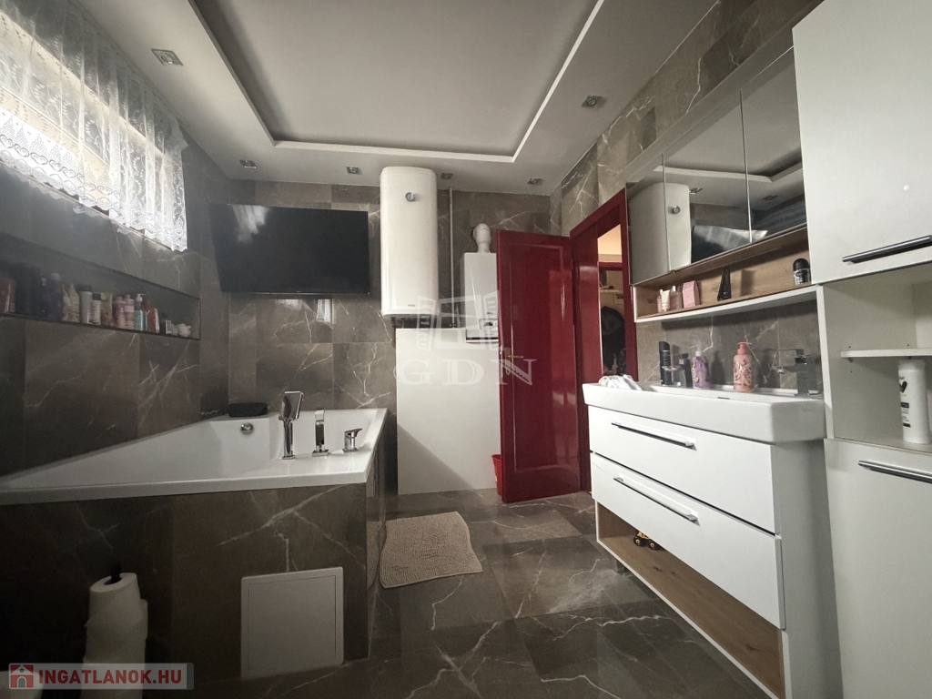 Felosztása: amerikai konyhás nappali, 2 hálószoba, előtér, nagy méretű fürdőszoba mosdóval, különálló mosdó, spájz.