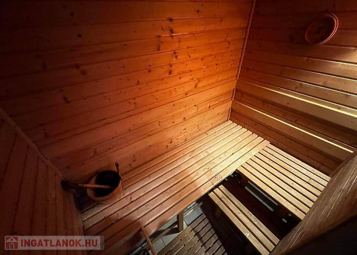 Az alsó szinten a fürdőszobában egy szaunahelyiség is kialakításra került.