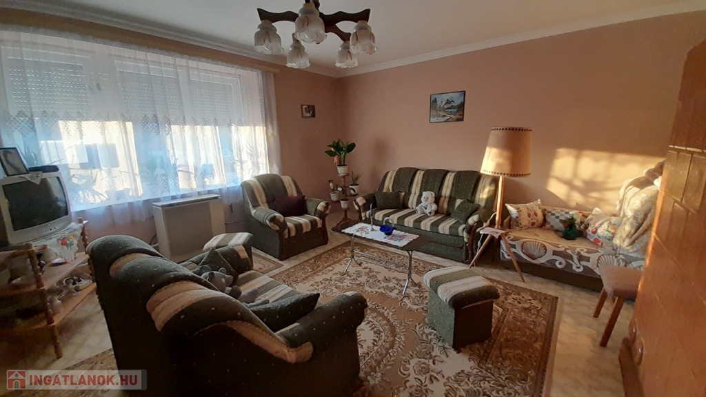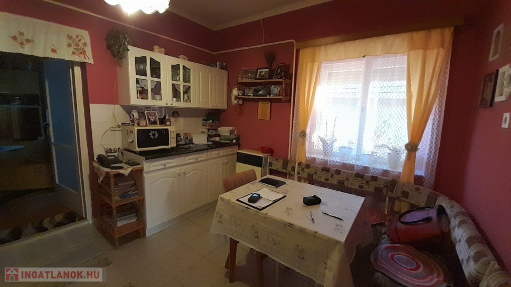 Az ingatlan 1984-ben épült, azóta a jelenlegi tulajdonosok gondosan karbantartják. A ház kőből épült, palával fedett a tetőszerkezete, nyílászárói eredeti fa anyagból készültek melyeket nem cserélték ki, mivel kifogástalan állapotban vannak. Szobák falai festettek. 50-60-cm válaszfalakkal rendelkezik, illetve a főfalak elérik a 80 cm vastagságot. Az első szoba aljzata jelenleg linóleum borítja, a második szobát laminált padló, illetve a konyhát, előteret és a fürdőszobát járólap. A szobákban beépített cserépkályha van, ami használható, de gázkonvektoros fűtési lehetőségünk is adott minden helyiségben. A fürdőszoba 2 éve lett teljes körűen felújítva, ebben beletartozik a vízhálózat csere illetve a falak csempézése, a sarokkád beépítése is. A konyha és az étkező egy helyiségben található, innen nyílik a spájz. Az ingatlan részben bútorozottan eladó.
