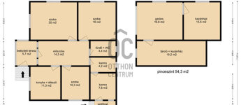 - A ház alatt nagy méretű alagsor épült, amely 54,3 m2-es.