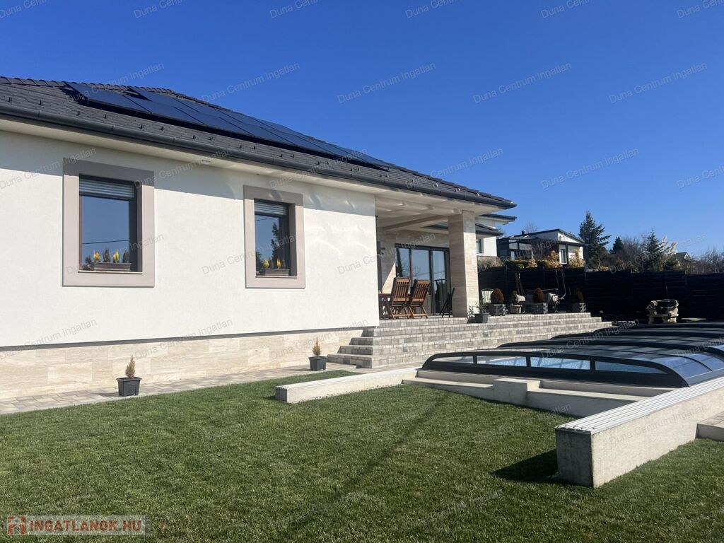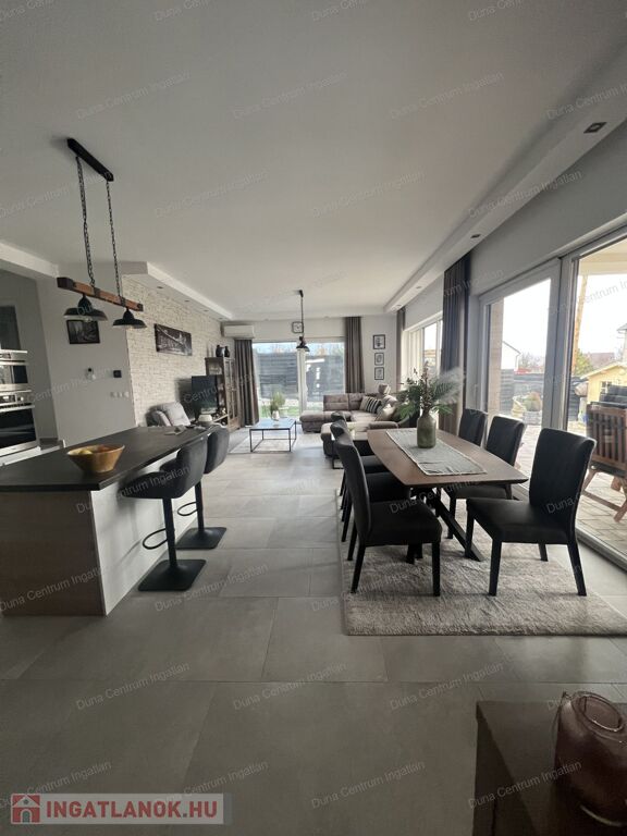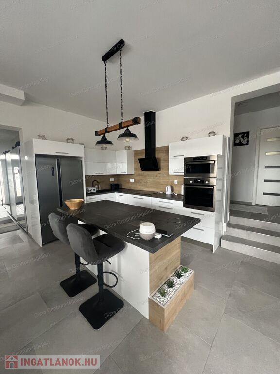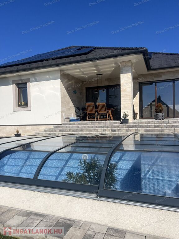 Modern, panorámás családi ház medencével, teljes bútorzattal Gyenesdiáson eladó ! Az ingatlanban tágas, világos nappali, amerikai konyha étkezővel, kettő fürdőszoba, három szoba, illetve egy külön bejárattal is megközelíthető apartman / nappali-háló, konyha, fürdőszoba / található. A házban központi gázfűtés található, padlófűtéses rendszerű, illetve hűtő-fűtő klímák kerültek felszerelésre, ami napelemekkel kiegészített. A kert parkosított, gondozott. Fedett, kétállású gépkocsibeállóban lehet parkolni. RUGALMAS fizetési feltételek ! Hívjon a részletekért !!
