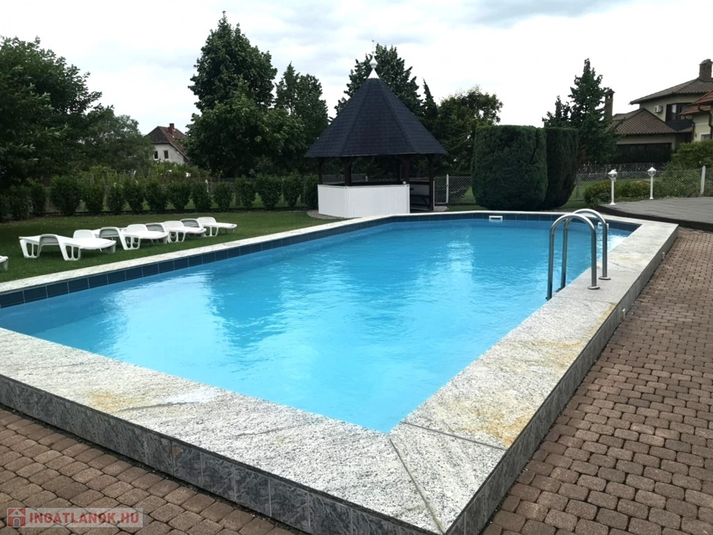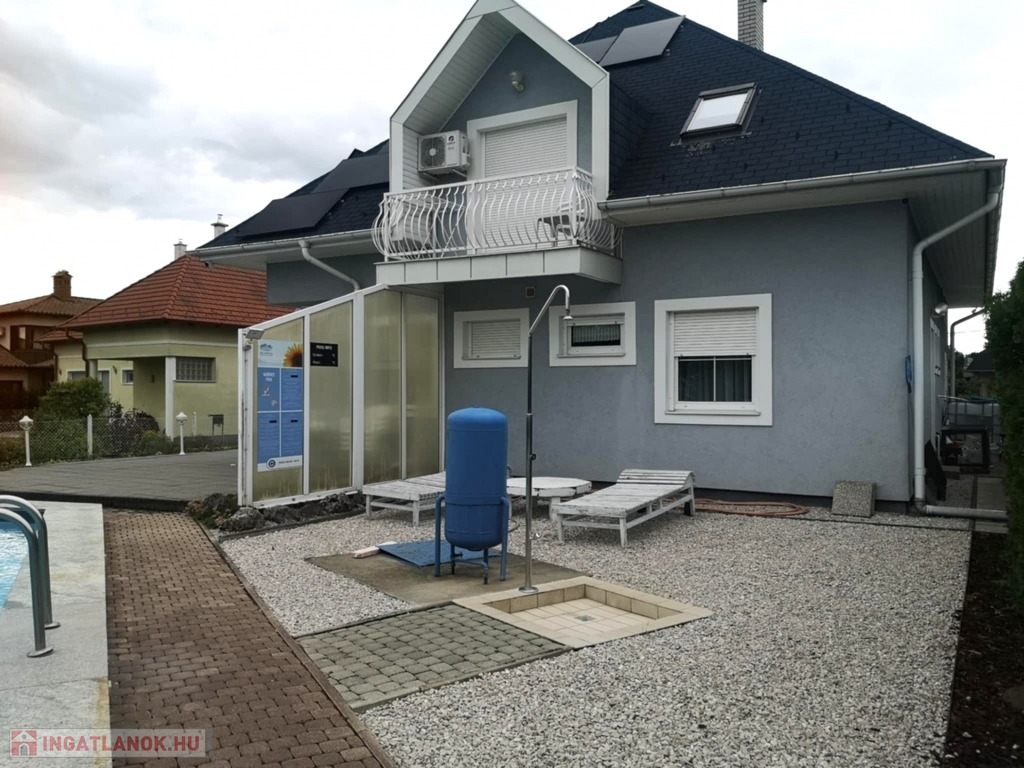 Zala vármegye, Gyenesdiás 220 m2-es, kétszintes családi ház eladó. A kedvelt Balaton-parti település csendes utcájában, a strandoktól 10 percnyi sétatávolságban található, a 2000-es évek elején épült, majd 2022-ben felújított ingatlan fogadószintjén előtér, illemhelyiség, konyha, nappali, étkező, 2 db hálószoba (fürdőszobával), előtér, terasz, 1 személyautó számára garázs elektromos garázsajtóval és mosókonyha, míg az emeleten 3 erkélyes lakrész 2-2 hálószobával és saját fürdőszobával került kialakításra. A ház melegéről gázkazán és hűtő-fűtő klímák gondoskodnak. Az 1100m2-es telken elhelyezkedő családi ház udvarán csempézett úszómedence (6X10X1,5m), fedett kerti kiülő, játszótér, öntözőrendszer szolgálja az ott lakók nyugalmát. A gépjárművek tárolására a garázson kívül térkövezett udvari beállók szolgálnak. A tehermentes ingatlanon szaldós elszámolású napelem rendszer kiépítése is megtörtént. Az ingatlan alkalmas lehet több generáció együttélésére, vagy befektetésnek egyaránt. A családi ház megvásárlásához – igény esetén – díjmentesen finanszírozási megoldásokkal szolgálunk.