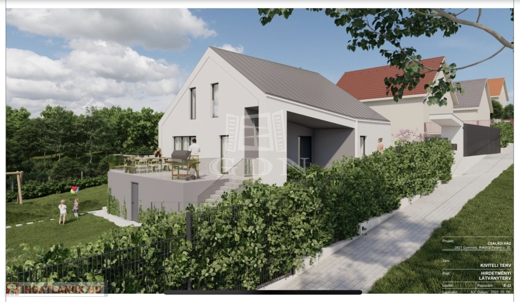 Megvételre kínálunk Budapesttől 40 km távolságra, M1-es autópálya zsámbéki leágazásától 10 km-re, a nyugalom és béke érzését nyújtó Gyermely település központjában egy nettó 125 nm alapterületű, építés alatt álló, önálló családi házat 822 nm-es telken.