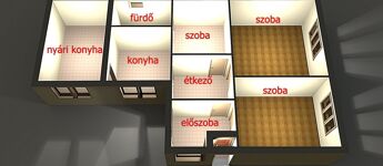A ház helyiségei: 2 nagy szoba, 1 kisebb szoba, fürdő, konyha, étkező, nyári konyha, előszoba.